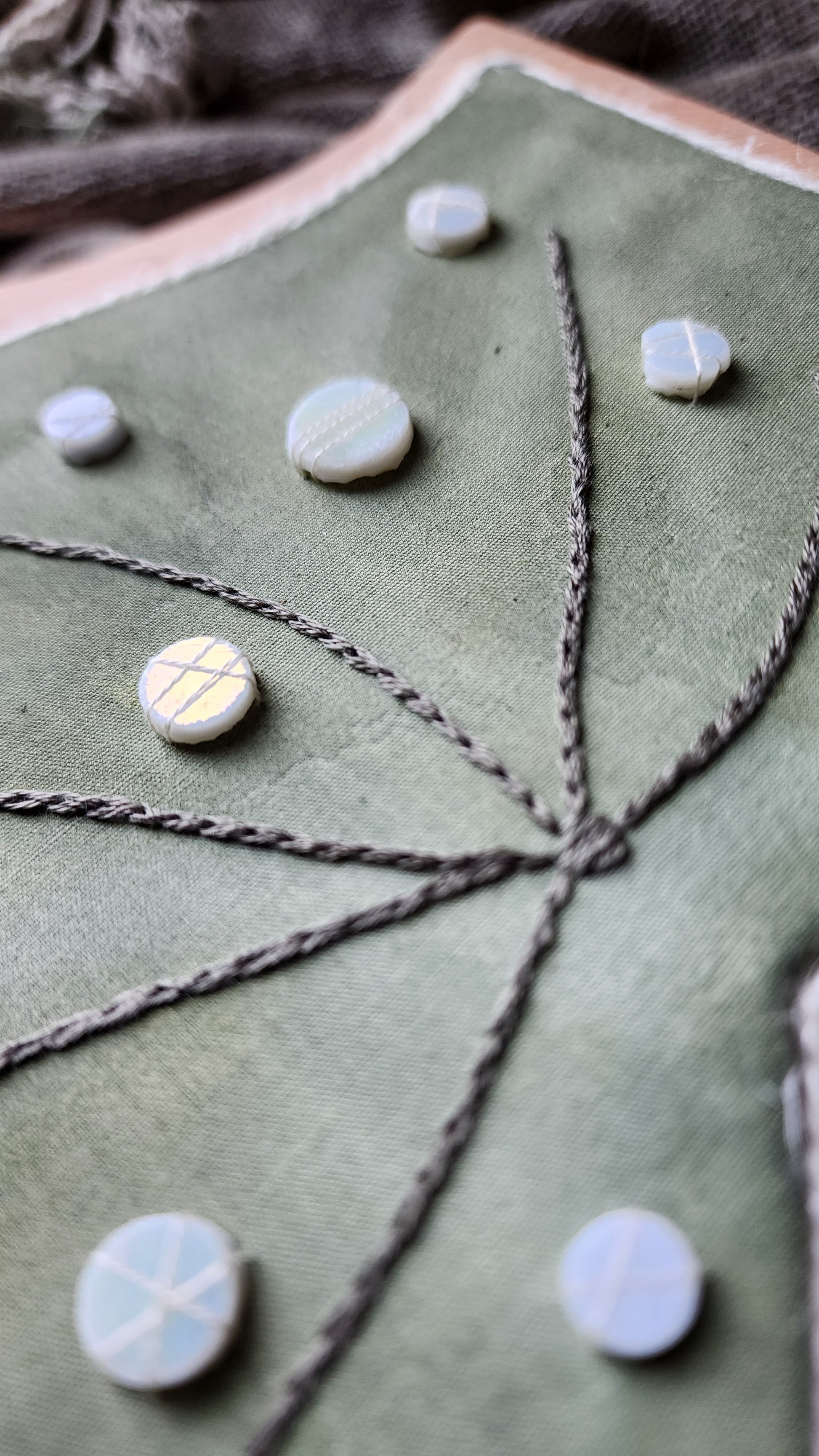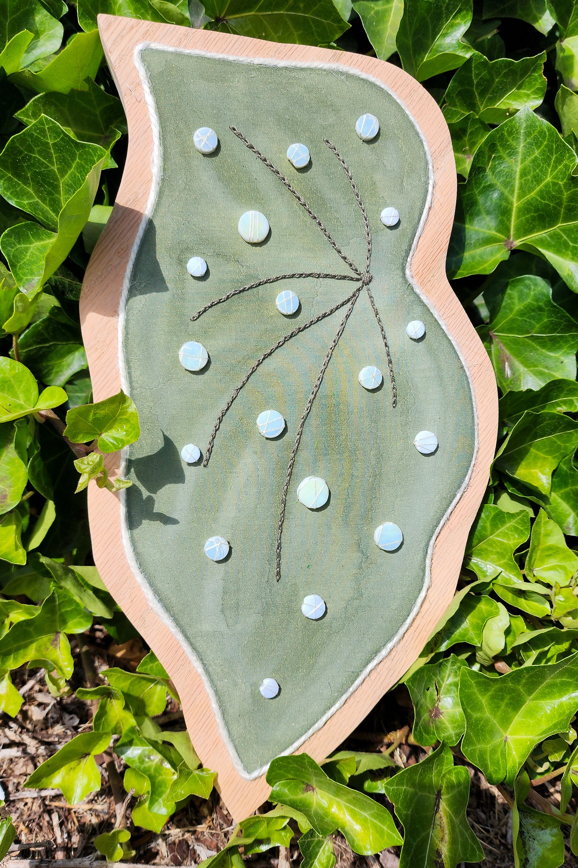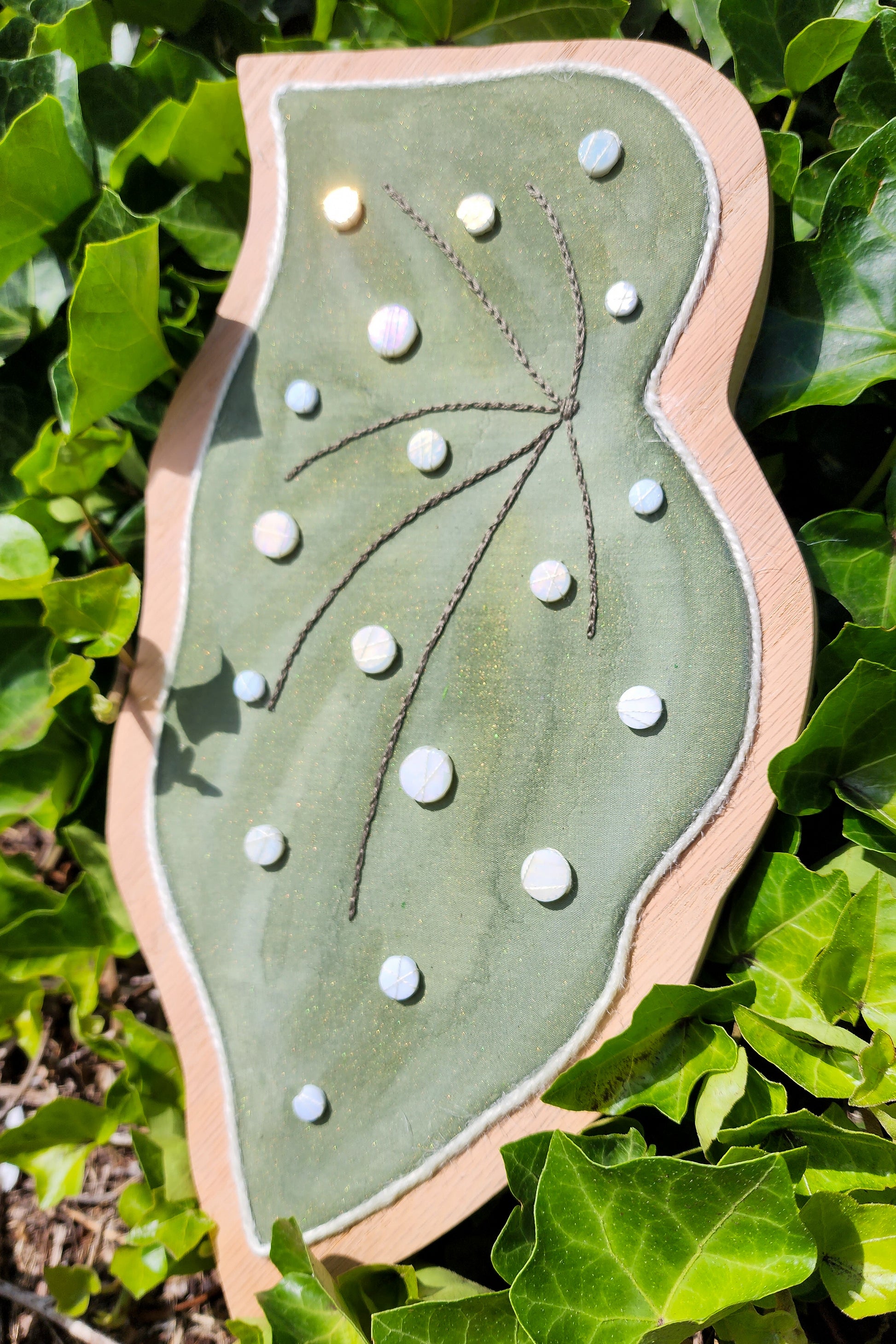 Bring nature into your home with this one-of-a-kind Begonia Leaf Embroidery Art! This beautiful spotted Begonia is handmade with a unique painted fabric, plus the iridescent spots reflect the sun's light for an extra touch of glam. So, go ahead and show off your green thumb with this beauty!