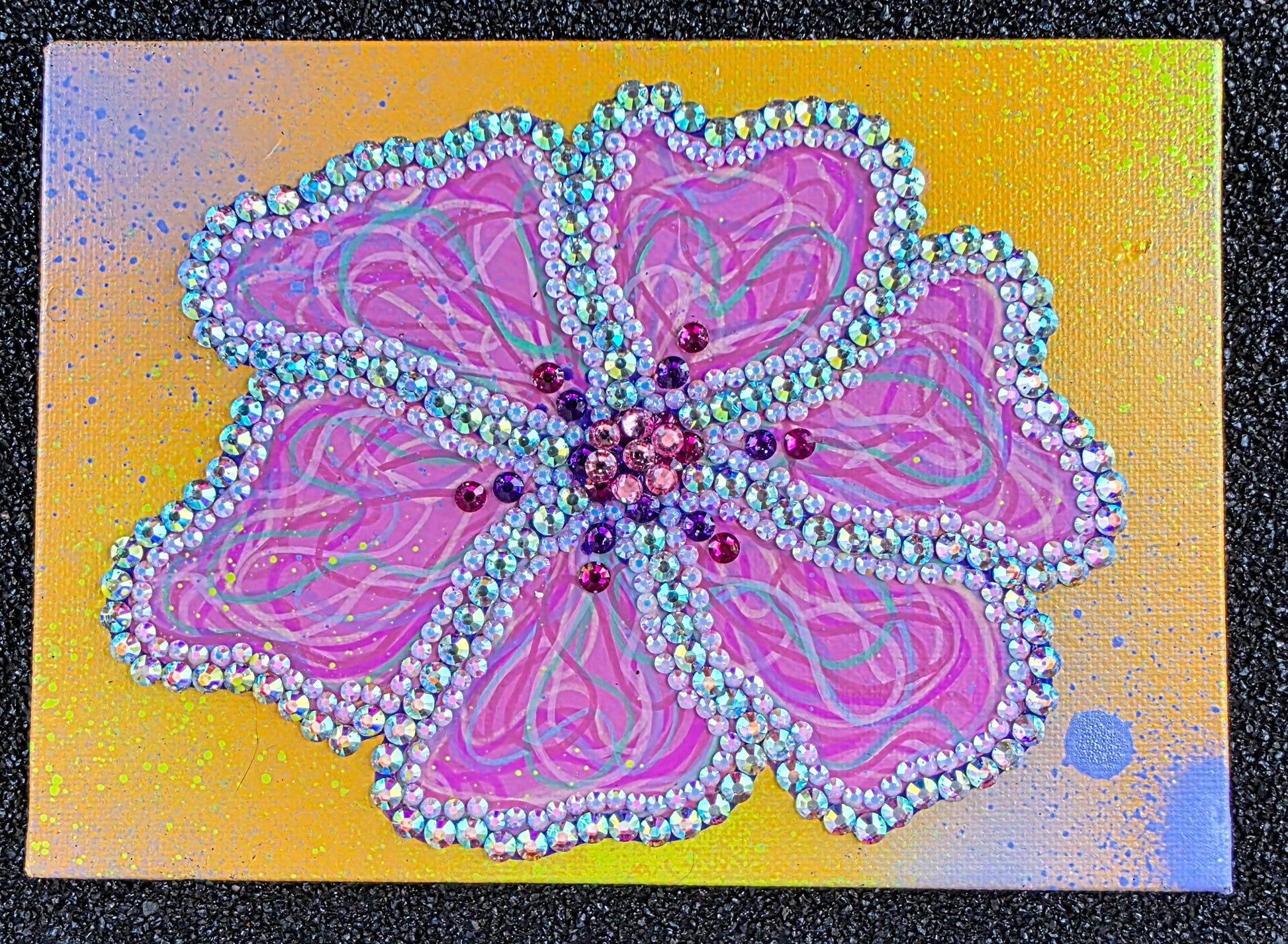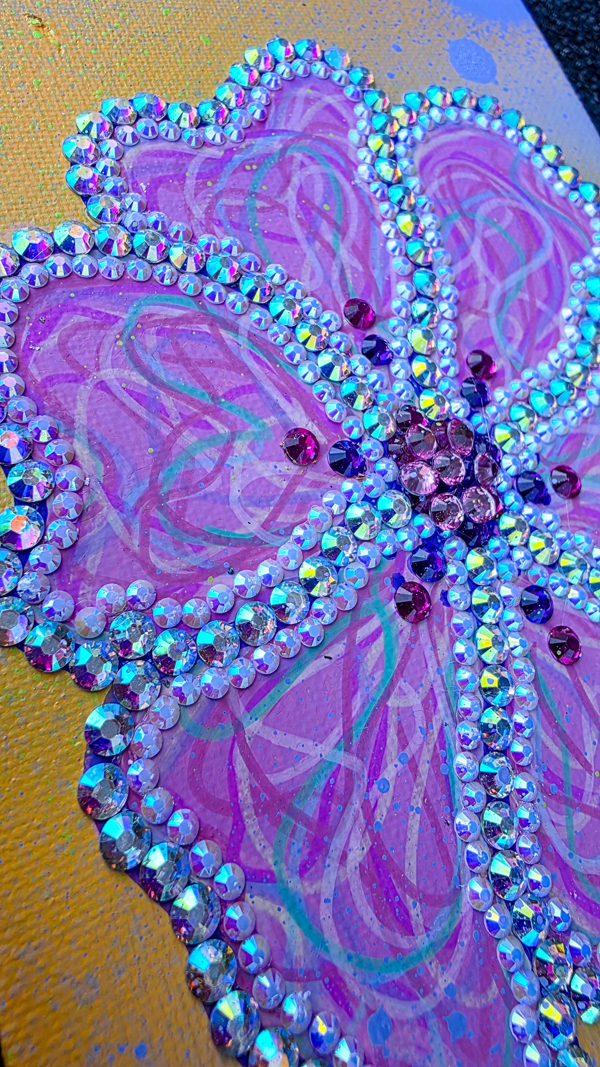 The flower is adorned with hundreds of rhinestones and will throw amazing rainbows around a sunny room.