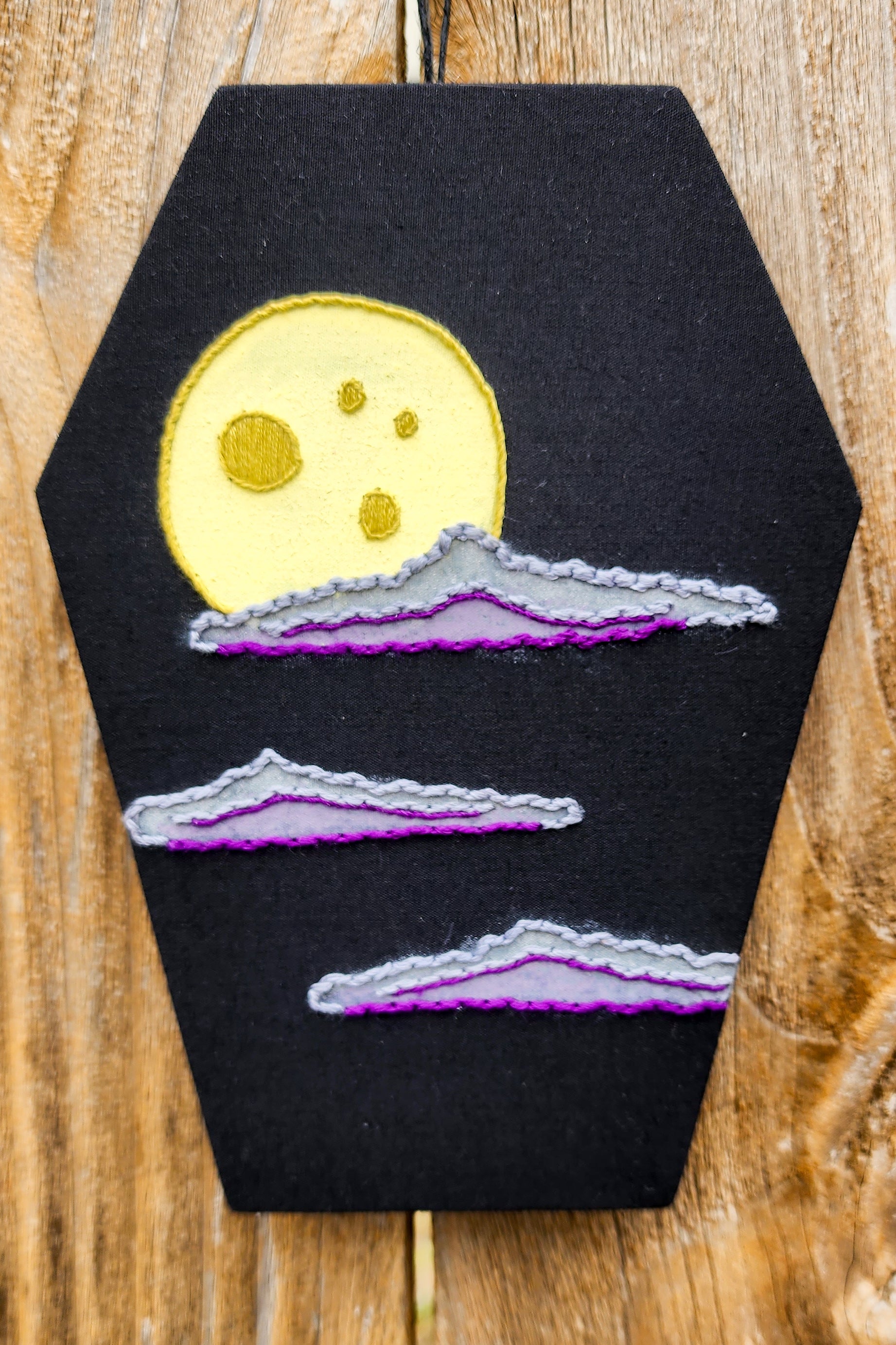 Coffins measure approximately 8” tall, 5” wide, and 1” deep. Variations in size may occur due to the handmade process.