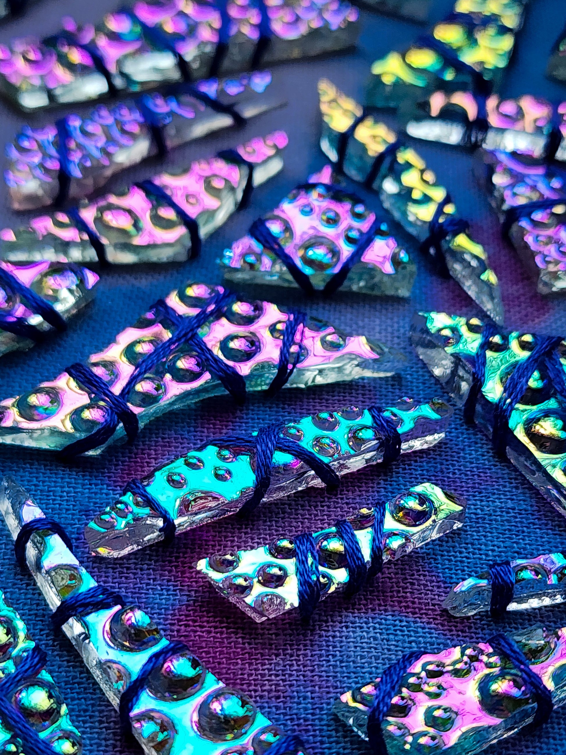 The stained glass community has been gracious enough to allow me to repurpose their glass scraps.
