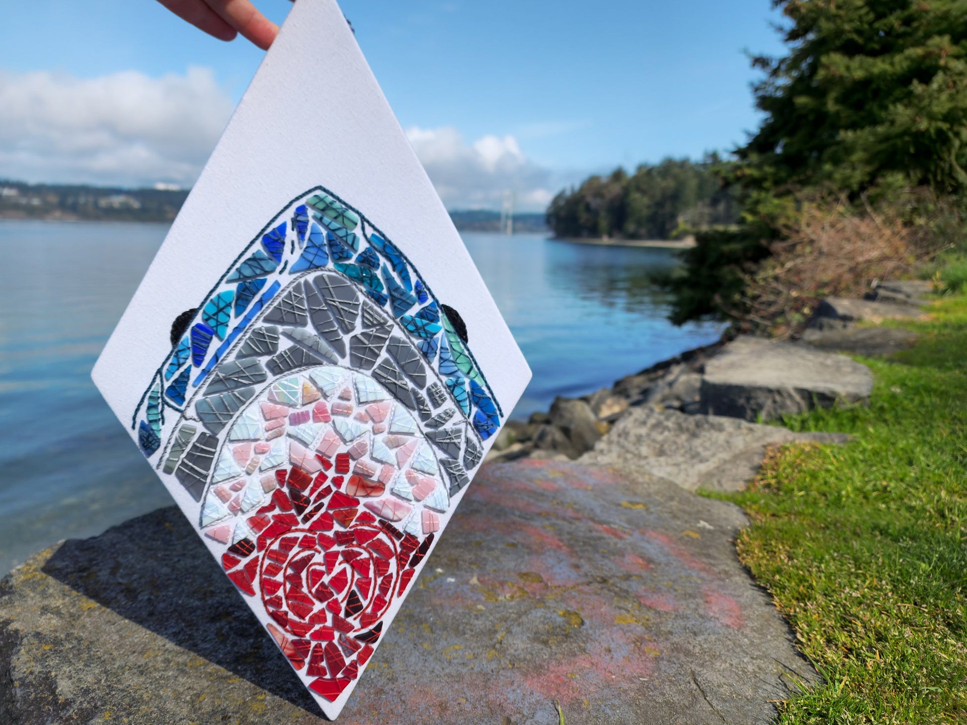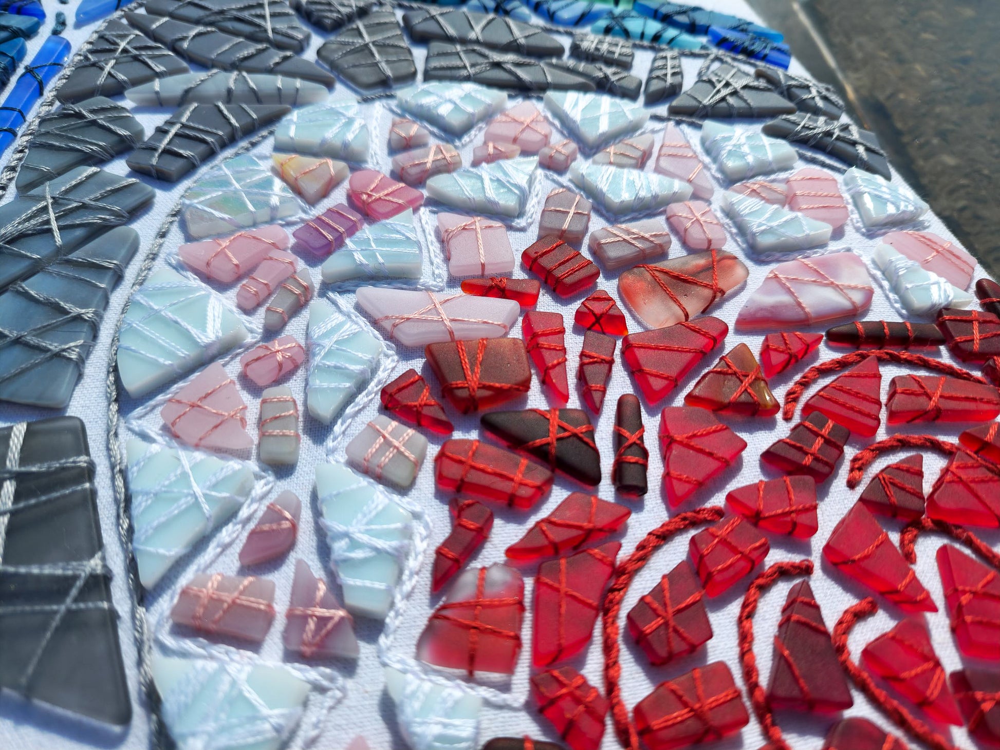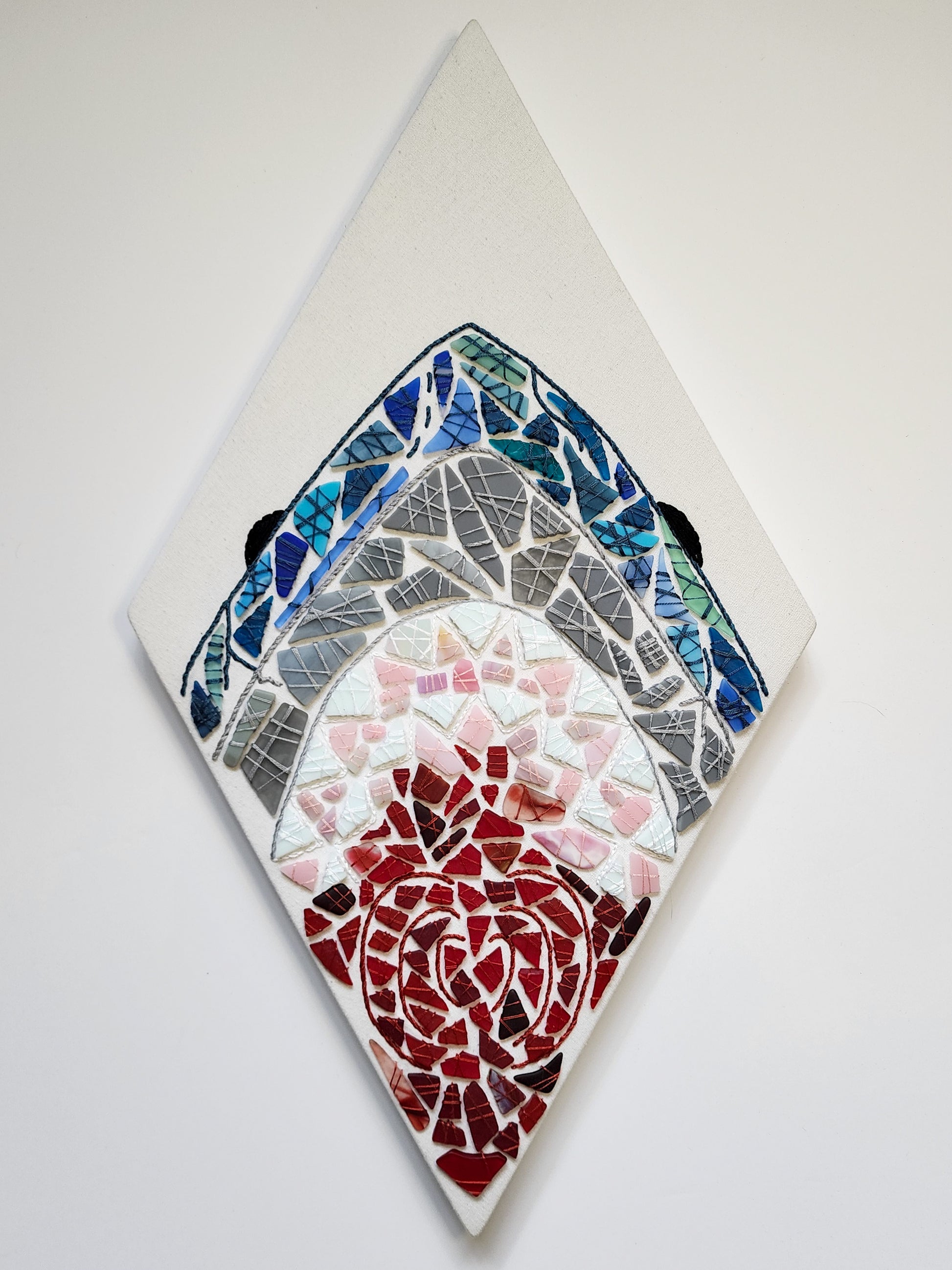 Glass pieces have been upcycled from other artists in the stained glass community gracious enough to send them my direction. Some pieces have been purchased from retailers, but out of the scrap piles.